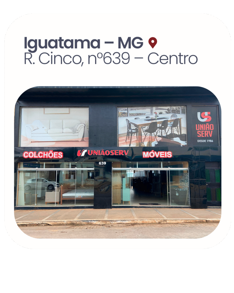 Desde 1986 no mercado, a União Serv Móveis é referência em móveis que unem durabilidade, conforto e estilo. Nossa missão é transformar ambientes em espaços acolhedores com peças feitas para durar. Trabalhamos com produtos de qualidade e um atendimento próximo e personalizado para cada cliente.